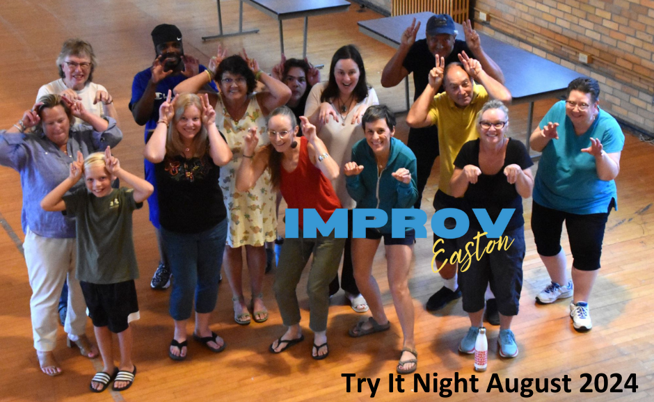 Try Improv Night is a free, welcoming workshop in Easton for anyone curious about improv—whether it’s your first time or you’ve joined us before and want to jump back in. We’ll use simple games and group activities to explore the basics of improv: listening, collaboration, and building on each other’s ideas.